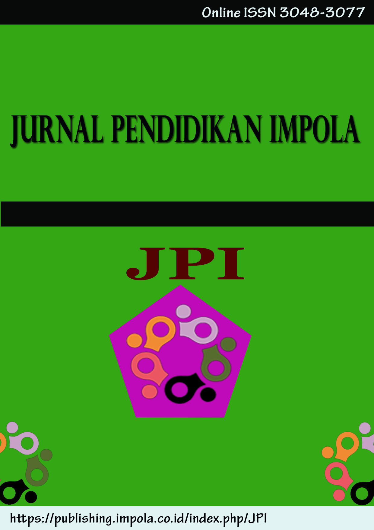 Journal title Jurnal Pendidikan Impola Initials JPI Abbreviation j.pendidik.impola Frequency 3 issues per year (March, July, and November) DOI Prefix 10.70047 Online ISSN 3048-3077 Editor-in-chief Astuti Samosir, M.Pd. Publisher PT. Impola Toba LENDT Citation Dimension | Sinta | Garuda | Google Scholar Jurnal Pendidikan Impola is a high-quality open-access peer-reviewed research journal that is published by PT. Impola Toba Lendt. Jurnal Pendidikan Impola is providing a platform that welcomes and acknowledges high quality empirical original research papers about education written by researchers, academicians, professionals, and practitioners from all over the world.